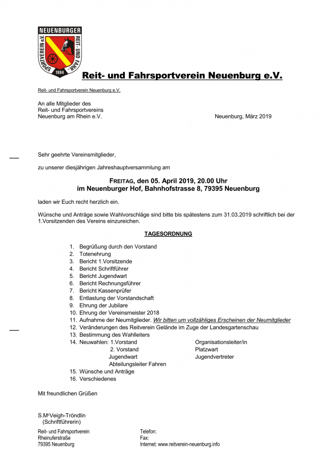 Reit- und Fahrsportverein Neuenburg e.V. An alle Mitglieder des Reit- und Fahrsportvereins Neuenburg am Rhein e.V. Neuenburg, Juni 2020 Sehr geehrte Vereinsmitglieder, zu unserer…