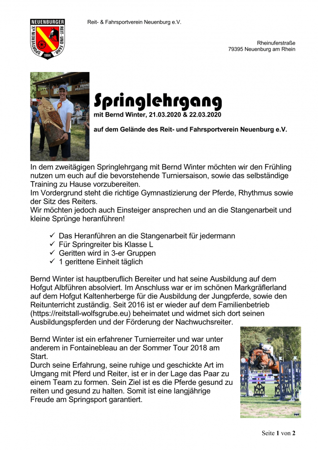 ABGESAGT wegen Corona-Pandemie ** Springlehrgang mit Bernd Winter Von Nico Keller15. Januar 2020Kommentar hinterlassen